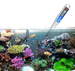 3.1 ใช้เครื่องวัดความถ่วงจำเพาะของน้ำ ซึ่งเรียก Hydrometer ลักษณะเป็นหลอดแก้ว ปัจจุบันมีการผลิต Hydrometer ที่สำหรับใช้ในการเลี้ยงปลาตู้น้ำเค็ม โดยจะมีขีดที่แสดงถึงความถ่วงจำเพาะของน้ำทะเล น้ำทะเลปกติจะมีความถ่วงจำเพาะประมาณ 1.0002 ดังนั้นจะมีขีดที่แสดงระดับค่าความถ่วงจำเพาะ 1.0002 ไว้เด่นชัด เมื่อหย่อน Hydrometer ลงน้ำ ถ้าขีดนี้สูงกว่าผิวน้ำแสดงว่าน้ำมีความเค็มสูงกว่า 32 ppt แต่ถ้าขีดนี้จมใต้ผิวน้ำแสดงว่าน้ำมีความเค็มต่ำกว่า 32 ppt จากที่ได้กล่าวแล้วว่าสูตรของน้ำทะเลสังเคราะห์มักจะได้น้ำที่มีความเค็มมากกว่าปกติ ดังนั้นเมื่อจุ่ม Hydrometer ลงน้ำ ขีดที่กำหนดจะอยู่สูงกว่าผิวน้ำ ให้เติมน้ำจืดลงไปทีละ 1 - 5 ลิตร แล้วแต่ขนาดของตู้ รอให้น้ำผสมเข้ากันดีจึงวัดด้วย Hydrometer อีกครั้ง ทำเช่นนี้เรื่อยๆจนขีดที่กำหนดอยู่ที่ผิวน้ำพอดี วิธีนี้จัดว่าเป็นการหาค่าของความเค็มอย่างคร่าวๆ แต่ก็ประหยัด ทำได้ง่ายและใช้ได้ดีกับการเลี้ยงปลาตู้ทะเล